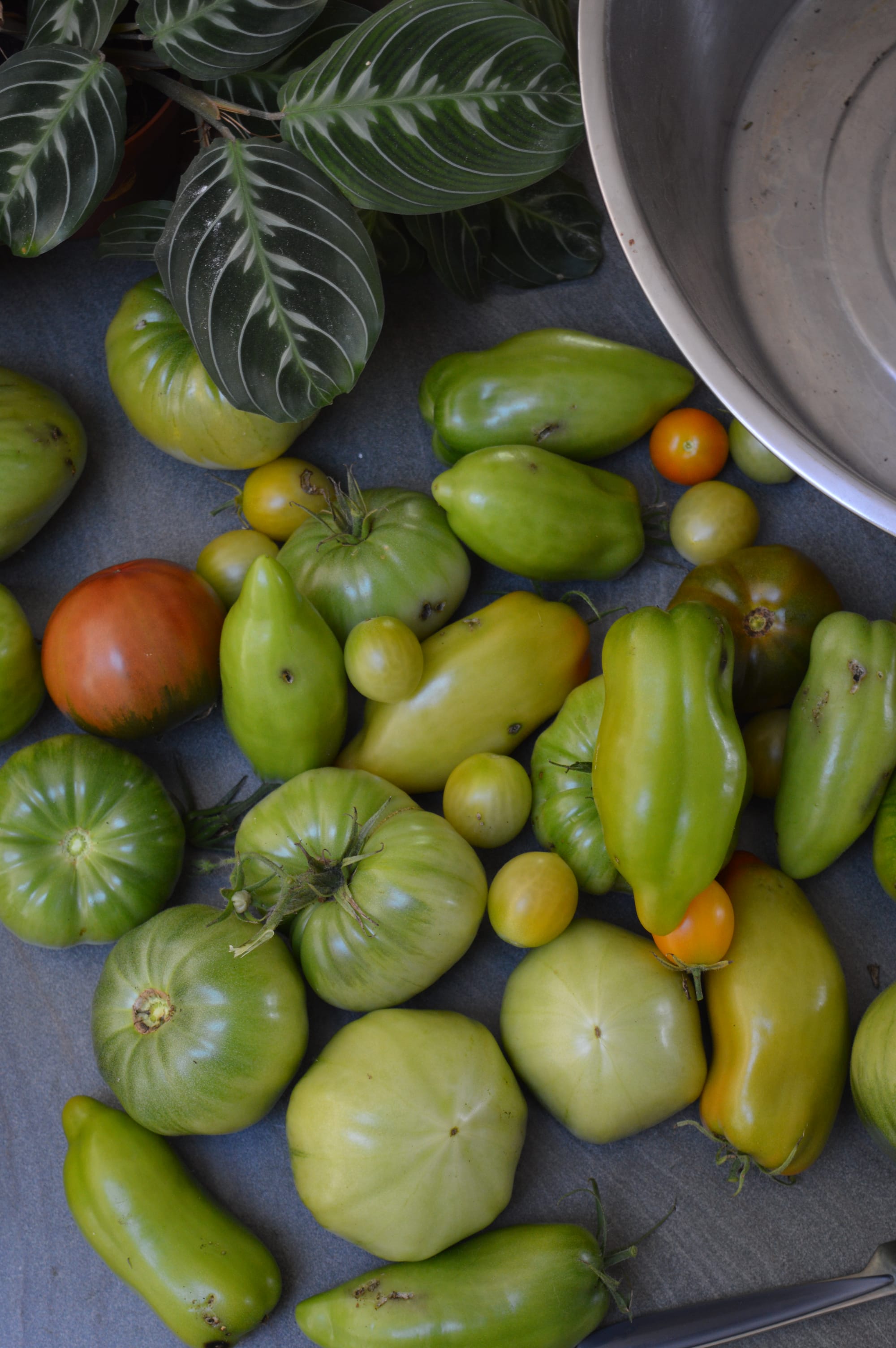 Alors ce week-end c'était récolte de toutes les tomates qui n'ont pas réussi à atteindre leur maturité et c'est parti pour une préparation sur deux jours :