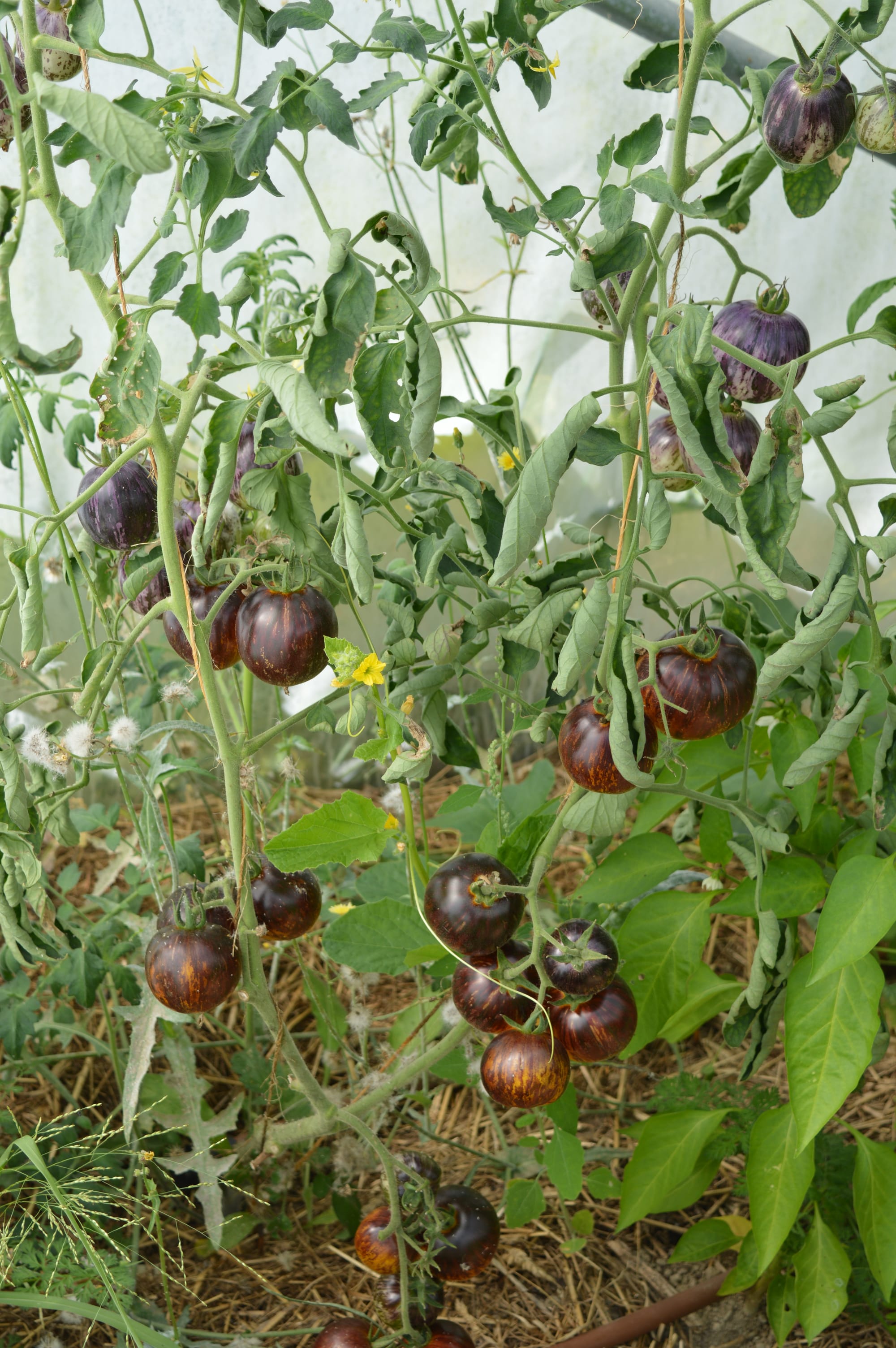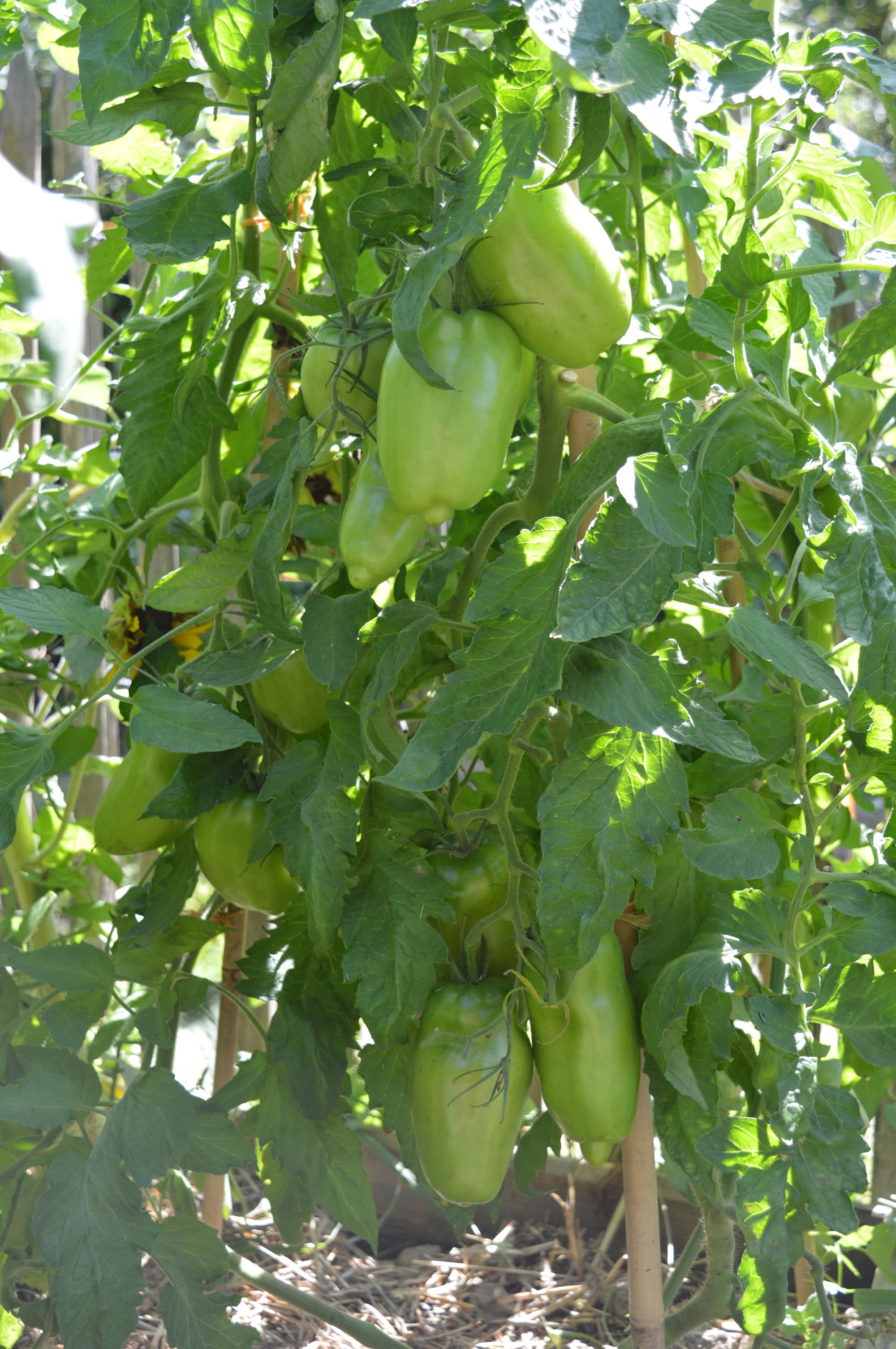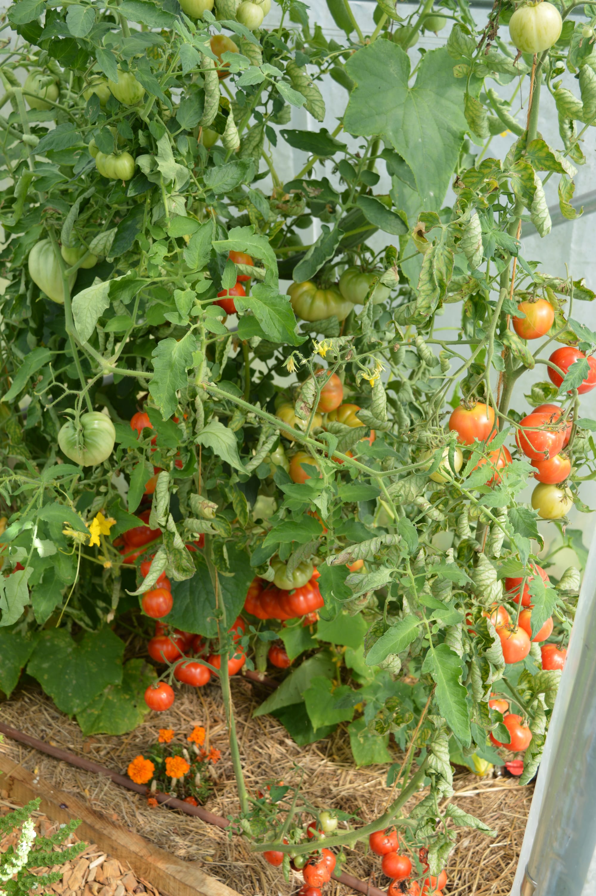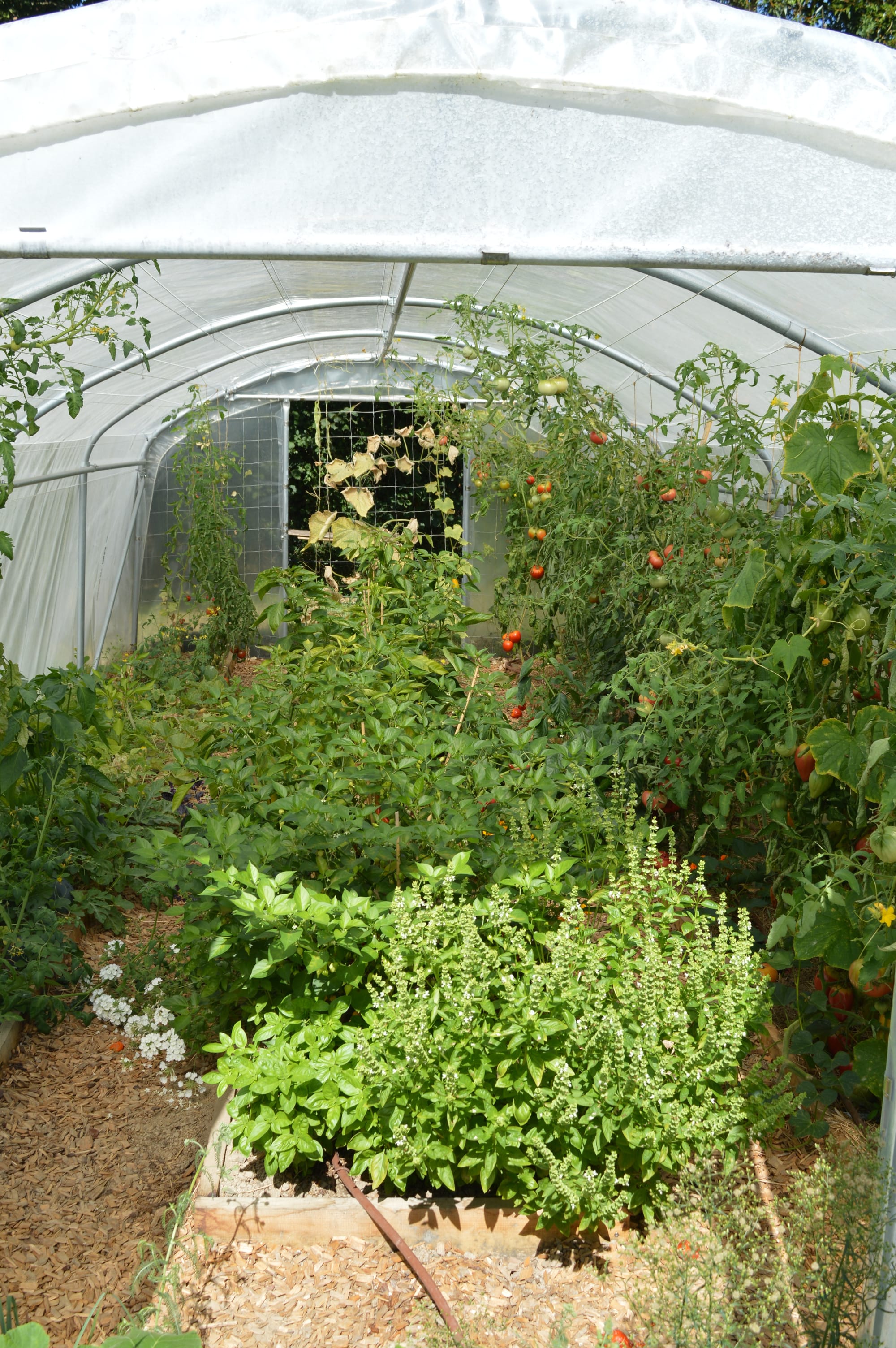 Tu entres dans la serre, ça sent bon & fort la tomate, le poivron et le basilic. On en voulait, on en a eu de la tomate ! Tous les pieds ont donné, toutes les variétés ont réussi. J'en mange tous les jours évidemment, en plus de faire des réserves de pots de sauce pour l'hiver à venir. Bien sûr on en distribue à volonté et avec plaisir aux voisins ;-)